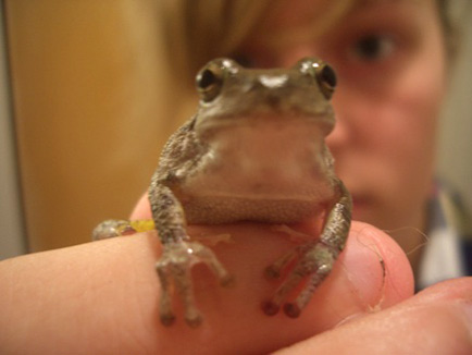 The best memory of last week’s celebration of our 49th wedding anniversary is the sight and sound of Heidi, Jon, Zoie and Kira all together in our walk-in shower talking, laughing, and shrieking (Kira) as they photographed a tree frog that Jon spotted on the roof deck of our house. The top of our house is thirty plus feet high, and seeing a frog up there was a great surprise. Jon caught it and brought it down into the living area, and to the sound of Charles’ “Don’t let that frog loose in the house!” took it into the shower area so he could open his hands and show it to the family – it was there they saw that the beautiful little creature had suction cup feet and was climbing up the tile walls. We identified it as a Cope’s gray treefrog, and because it is a night creature and hides itself well, it is rarely seen, and certainly not so close up and personal. After the adventure, the frog was carried outside to resume its reclusive life.