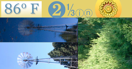 Summer’s first official day – hot, humid, hungry mosquitos, and the 2 1/3 inches of rain last night still has the wetland in its river manifestation, with waters covering the paths to the bridges. On these rare occasions, we walk on the somewhat shorter paths on this side of the stream, circling our neighbor’s pond and coming back past the windmill and through the hedge of lilacs that stands nearby.